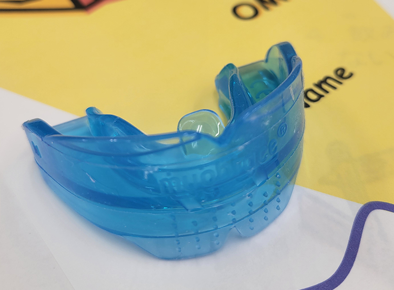 マイオブレースという装置を自宅にて、日中1~2時間と就寝時に装着します。