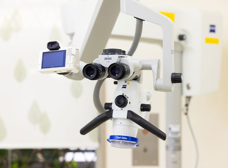 歯の神経の治療では、患部を細部まで観察できる精密な医療機器(マイクロスコープ)を活用しています。これにより、通常の目では捉えにくい細かな部分まで鮮明に確認可能です。